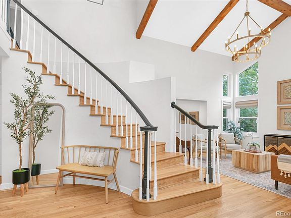 Gorgeous estate living on a quiet cul-de-sac street in one of the most stunning neighborhoods in Highlands Ranch! Welcome home to your 6 bedroom modern mountain retreat, complete with a huge finished basement and wooded backyard so big, your inner child will be envious! Upon entry, you’re greeted by 17' ceilings, custom lighting, grand staircase and solid oak floors throughout the main level and second floor. You can’t help but be drawn to the two-story living room with exposed wood beams, oversized windows, and stately chandelier. It’s easy to continue the party with the bright and spacious dining room. But who’s staying in the dining room after they see the totally renovated new kitchen?! This just completed chef's kitchen includes smart appliances, an incredible 60” built-in fridge, stunning granite waterfall counters and handmade soft-close cabinetry (see 3D tour!) From the brushed champagne hardware, and under cabinet mood lighting to the Alexa-enabled faucet, this kitchen has ALL the things and plenty of entertaining space. The kitchen opens to the breakfast nook and great room, both of which are showcased by the views of the incredible backyard. Discover the covered patio, perfect for taking the party outside, lush grass space (big enough for little league practice) and a playhouse next to mature trees and rocky hills. Head into the great room when the sun goes down and cozy up in your two story oasis. Around the corner, you'll find an incredible custom navy mudroom and adorable powder bath. Upstairs continues the luxe feel with hardwood floors and primary suite with soaring ceilings, bay window and a HUGE California Closets walk-in. 3 spacious bedrooms and a full bath complete the level. The finished basement has all the extra space you could need! A massive media/game room/wet bar, 2 additional bedrooms, a 3/4 bath and built-in desk space, rounds out the basement. With nearly $200k in updates in the last 18 months, this home is absolutely move-in ready!