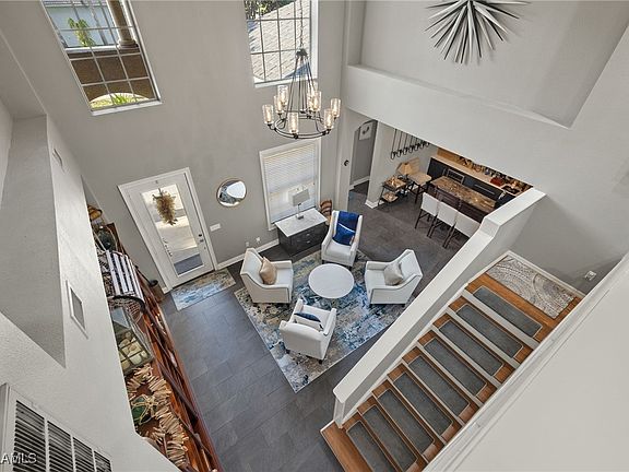 Welcome to your dream home in the Promenade East at The Forum! This stunning 5 Bedroom, 4.5 Bathroom home offers space, style and convenience -- just minutes to RSW Airport, I-75, shopping and dining. The formal Living Room impresses with a 20-ft ceiling, wall of bookcases and elegant bar. The Kitchen features double ovens, 2 refrigerators, a new microwave and a custom coffee bar, opening to the Family Room for easy entertaining. The First Floor includes two bedrooms! A Primary Suite with spa-like bath and a second Bedroom with ensuite Bathroom -- ideal for guests or extended family. Upstairs you'll find a Loft/Office, oversized Bonus Room, plus 3 Bedrooms and 2 Baths. Enjoy your private outdoor retreat with a covered Lanai, tongue-and-groove ceiling and a pool with sunshelf. Additional hightlights: two separate garages, custom finishes, newer zoned AC units, new roof (2023) and full hurricane protection. This rare find combines elegance, comfort, and an unbeatable location -- schedule your showing today! You will not find a better home or value in Lee county!!