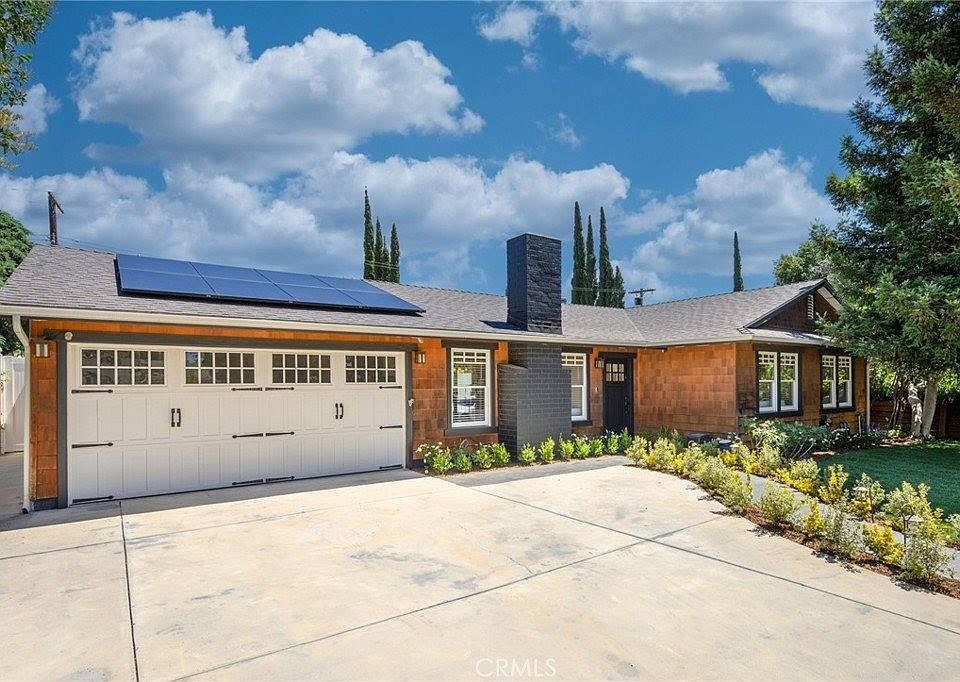 Step into the haven of entertainers' delight, a hidden gem exuding endless character and allure! This Craftsman architectural home welcomes you with an enchanting two-tone exterior, adorned with fresh drought tolerant landscaping. Follow the newly laid path leading to the front door of this exquisite ranch-style abode, and be captivated by the open embrace of an inviting modern floor plan. The modern essence unfolds with a fireside breakfast area, a commodious living/dining space, and a kitchen that's a culinary dream. This chef’s kitchen boasts sleek cabinetry, S/S appliances, and a large island with breakfast seating that beckons for casual gatherings or culinary creations. The two large bathrooms each feature spa-like features to compete with many five star hotels, with a custom jetted stall shower and clawfoot soaking tub & TV with Slate mosaic floor tile throughout, and another restroom with black Marble tiled walls and a large jetted spa tub for the ultimate relaxation experience. Through the magnificent double French Doors, the outdoors unfolds in all its splendor - a captivating yard adorned with pristine turf, soaring 7-foot vinyl privacy fencing, newly tiled outdoor seating, and a grand glistening pool with an overhead waterfall. Safety and serenity harmonize as a Guardian pool fence surrounds this aquatic oasis. A dedicated BBQ station stands ready, complemented by a very cool pass-through roll-up kitchen window, seamlessly bridging outdoor and indoor realms for effortless guest service. Venture further, exiting the backyard to discover a fully transformed garage, where camaraderie takes center stage as you enjoy evenings with your lovable pets where they can hop over to their outdoor kennel to catch some fresh air. A litany of upgrades grace this home, including an AC Pro Central HV/AC system for ultimate climate control, CertainTeed R-38 attic insulation to keep energy bills in check, and Solaria solar panels to harness the power of the sun. These improvements, along with the Owens Corning roof, signify a commitment to quality and efficiency. Don't miss this chance to witness and appreciate the embodiment of elevated living in this Craftsman architectural masterpiece!