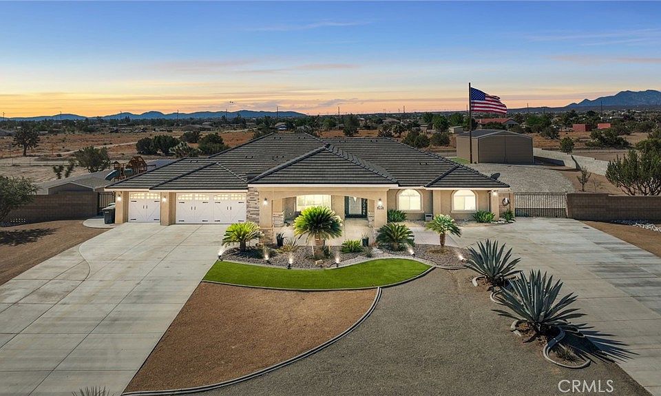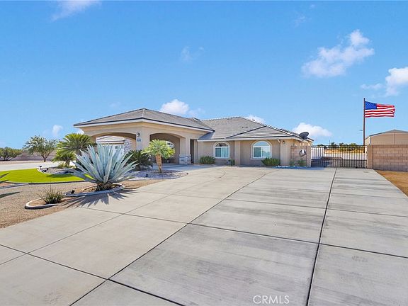 WEST OAK HILLS HOME ON PAVEMENT!! Welcome to 9957 Silver Palm Drive, where space, comfort, and country living meet modern convenience. This stunning 4 bedroom, 3.5 bath home sits on a fully fenced 2-acre lot, offering privacy, security, and plenty of room to spread out. Step inside to an open and inviting floor plan with a spacious living area open to a gourmet kitchen with large island, quartz counter tops, custom cabinetry and a dry bar for entertaining. Each side of home has its own MASTER SUITE with large ensuite bathrooms that include walk in shower, separate tub, large vanity and walk in closets. Home also has a bonus room/office/play room with French doors for privacy and a large indoor laundry room with wash sink, folding counters, a sink and built in hamper. Outdoors is where this property truly shines—completely landscaped and fully fenced with block wall, vinyl, and chain link fencing for a clean and secure layout. 3 Car Attached garage 24'6" X 30 ft deep with a 14' X 7'2" knockout, PLUS a DETACHED WORKSHOP IN BACK 26 X 50, SHED 10 X 12 for extra storage and a Greenroom 11X13'10". Home is complete with 23 Solar Panels (to be assumed by buyer) and 2 Tesla Power Walls and FULLY PAID OFF VIVINT HOME SECURITY SYSTEM. Located in the sought-after community of Oak Hills, this home offers the best of high-desert living with wide-open views, peaceful surroundings, and convenient access to the freeway, shopping, and schools, located in the Snowline School District.