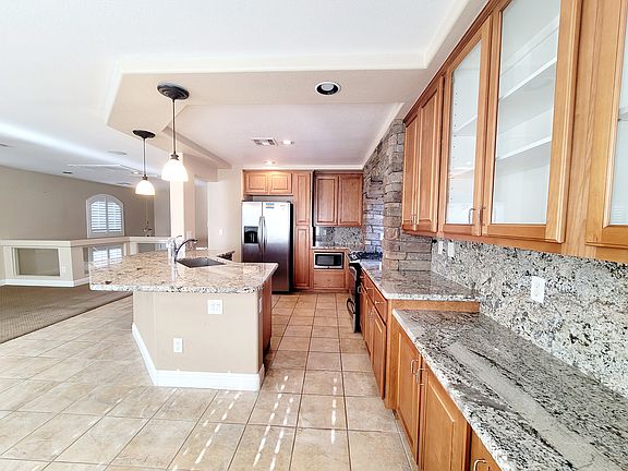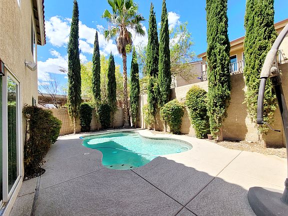 Beautiful property with POOL in 89141! Stunning, Loaded Designers' Finishes!! Split-level floor plan features plantation shutters, stone arch, upgraded carpets/tile, surround sounds, media center & custom built-in closets. Gorgeous granite counters & backsplash, top rated SS Appliances, fixtures and upgraded cabinetry in Kitchen. Primary bath mosaic tile walls, quartz waterfall countertop & CLAW tub. Tranquil backyard with an inground POOL. The monthly pool service, yard Maintenance, sewer and trash are included in rent. Small pets OK with an approved application. Property is a must see.