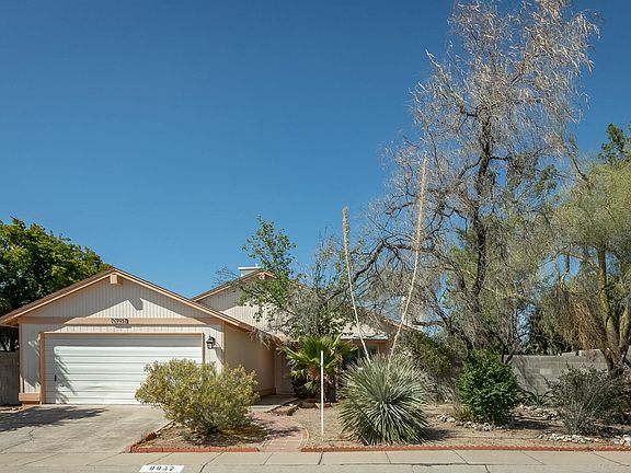 Charming 3 bedroom home in Ridgeland Flat Subdivision. Freshly painted outside, mature landscaping. Well laid out split- bedroom floor plan. Vaulted Ceilings and a fireplace, great tile and ready to upgrade carpeting, kitchen, and HVAC. Exits off of 2 rooms out to covered patios. Lovely front, side & back yards with several fruit bearing trees. Storage shed and dog run in side yard. Located on the east side of Tucson, close to shopping, DMAFB, Amazon. 7 minute walk to HOA Common area includes Park, Playground, Pool, Ramada.