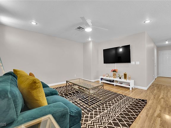 Amazing location! Located in the desirable Silverado Ranch area, this home offers easy access to freeways, shopping, and more. The community features great amenities, including a pool and playground for residents to enjoy. Step inside this move in ready home that includes stainless steel appliances, a spacious downstairs family room, and a cozy breakfast nook. You'll also enjoy direct access to a private, fenced side yard and backyard space. Upstairs, the generous primary bedroom features a ceiling fan and mirrored closet doors, while both secondary bedrooms also come equipped with ceiling fans. The attached one-car garage includes sleek epoxy-style flooring and opens directly into the home. Plus, there's an additional driveway on the opposite side, offering extra parking convenience. Come see this home today!