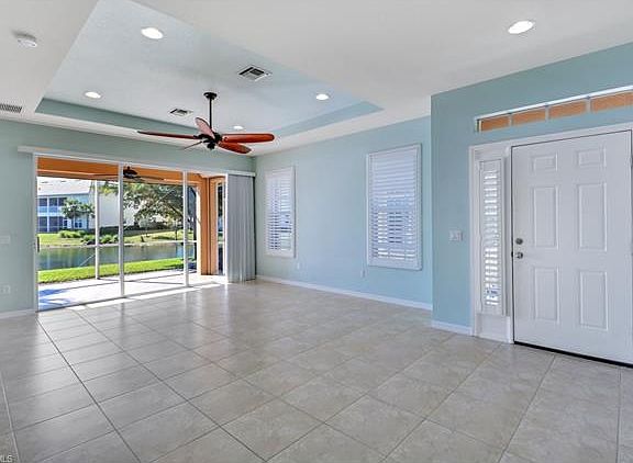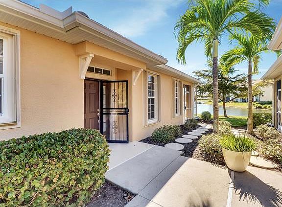 Stunning Lakes views & centrally located in a gated communty. This lightly lived in villa has tile floors throughout, electric & accordion hurricane shutters installed on all windows. Extra thermal blown insulation in attic for extra energy efficiency. A steel security storm door for extra security as you enter your residence you will find Plantation Shutters throughout with adowrap vertical blinds over the sliding doors. Newer appliances in the kitchen with hard surface counter tops with a tiled back splash. Added cabinets in laundry room for extra storage. Added overhead storage in garage gives you even more storage. The garage door also has an overhead screen for the guys who want to have a man cave or work shop. The screened back porch is nice for those evening sunsets and morning coffee breaks. Tortuga has a community pool, heated spa, fitness room, dog park, Tennis/ Basketball court, BBG grills. HOA fee of $1,182 per quarter includes Hazard insurance, lawn maintenance, basic cable, reserves for roof replacement & exterior painting. Close proximity to Shopping, restaurants, Health Park Hospital and less then 5 miles to the beaches of Sanibel Island & Captiva