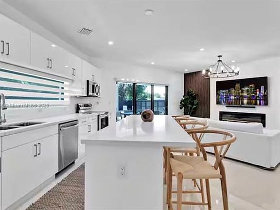 Experience modern living in this fully furnished 4-bedroom, 3-bath single-family home featuring sleek updated finishes, custom wood panel accents, and an open-concept layout with a designer fireplace and stylish wine display. Spacious living areas flow seamlessly to the outdoors, where a sparkling pool and private basketball court create the perfect retreat for relaxation or entertaining. This turnkey residence comes beautifully furnished, with water and cable included. Flexible lease terms from 6 to 12 months available. *Garage not included.*