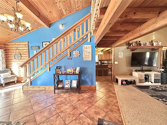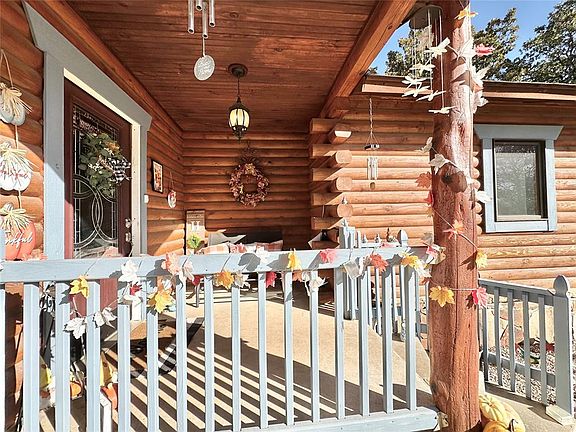 This charming log home features spacious bedrooms and generous living areas throughout. The oversized kitchen and dining space are adorned with granite countertops, complemented by solid oak cabinets and woodwork throughout. Enjoy the rustic look of beamed ceilings that soar high above, with an upstairs railed walkway providing a stunning view of the living room and inviting foyer below.