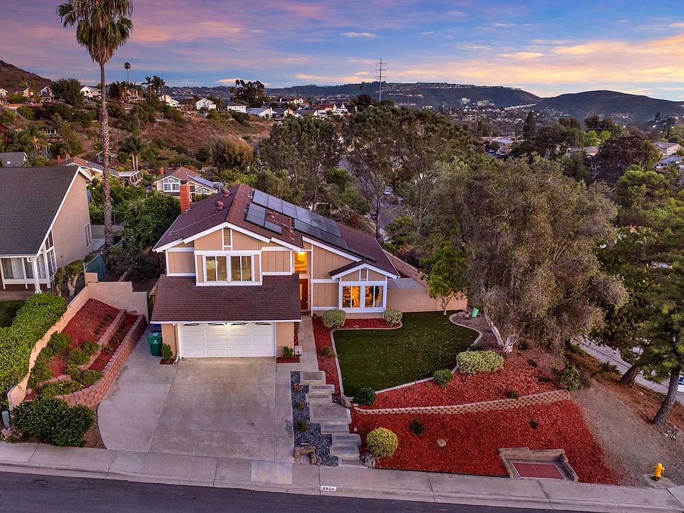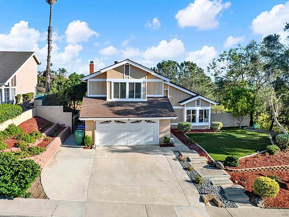 Beautiful 4-Bedroom Home on Expansive Corner Lot – No HOA, No Mello Roos! This spacious 4-bedroom, 2.5-bath home offers 1,950 sq. ft. of living space with one bedroom conveniently located on the main level. The living and dining rooms feature vaulted ceilings that create an open, airy feel. The updated kitchen includes granite counters, abundant storage, and stainless steel appliances, while the family room boasts a cozy fireplace. See supplement. Upstairs, the primary suite showcases a brand-new spa-inspired bathroom, complemented by all-new flooring throughout the second floor and stairs. Generously sized bedrooms and excellent natural light make this home move-in ready. Set on a rare, oversized corner lot, the property features a large, private backyard with sweeping views and mature fruit trees—perfect for relaxing or entertaining. With no HOA and no Mello Roos, you’ll enjoy both freedom and flexibility. Don’t miss your chance to own this beautifully upgraded home with space, privacy, and charm—all in one of Rancho Penasquitos most desirable neighborhoods.