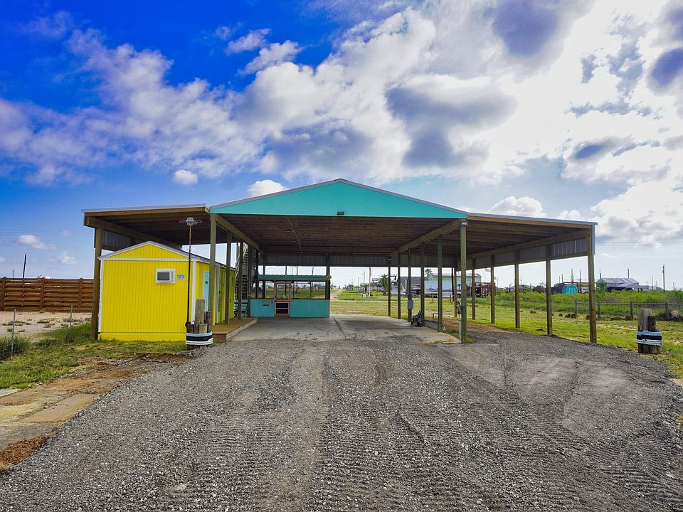 Great Family/Corporate Compound within a block of Caney Creek!! This property is FOUR lots in total, and fenced with gates on both ends, for easy pull through access for RV's. Screen Room for entertaining, upper deck to see great views of Caney Creek, Sunrises are incredible and the Sunsets are spectacular!! Also on this property is a 60 x 40 Concrete Pad with a Windstorm Rated Cover plus 3 RV HOOK UPS with 30and 50 AMP Service!!! This will accommodate 2 RV's with Slide outs with no room to spare! Also for added weekend pleasure is a Bunkroom that will sleep 4 and Bath House with all facilities, plus a sitting area, both with AC Units . This is a turn Key property and not many in Sargent so large! Could even be a small RV income producing investment!!Sargent Beach is minutes away, and the fishing is fantastic in Matagorda Bay!! Get your slice of paradise today!!