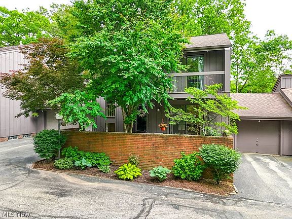 This stunning townhome is located in a highly desirable Greenwood Village that offers indoor and outdoor pool, clubhouse, tennis courts, playground and a stocked pond as well as biking and hiking trails. The amazing location with the views of the Cuyahoga Valley National Park. Welcoming front courtyard leads into the foyer with wood flooring that flows throughout the main level. The galley kitchen is updated w/white cabinets, granite counter tops, stainless backsplash and all appliances to remain. Dining area is open from the kitchen and family room that features beamed ceilings, a built-in bar area and wood burning fireplace beamed ceilings, crown molding and a balcony with amazing views. Head to the second level where you will find a primary bedroom with an updated bathroom with a beautiful tile shower. There are also 2 additional great size bedrooms, one w/ a 2nd balcony and a 2nd full bathroom just off of the hallway.New carpeting on the 2nd level (2020). The walk-out basement has ceramic flooring, a laundry area and a partially finished area that leads out to a patio. There is also a 2 car garage and no lack of storage space. The furnace and AC were both updated in 11/2019 and H2O tank was updated in 2018, new garage door opener(2020), new roof (2022), new siding (2023) and more. This home is an absolute MUST SEE!