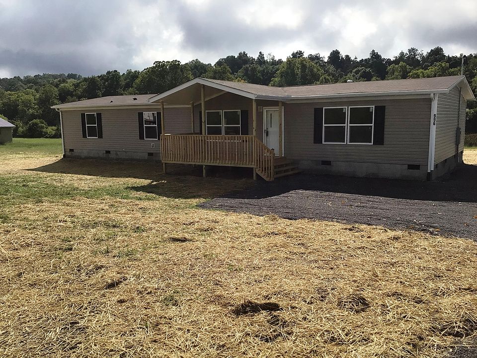 Brand New Double Wide with permanent foundation ready to move into! Home has 4 Bedrooms all with large closets and 2 Full Baths. Home is 1,791 +/- sq. ft. of single - level & Open Concept living area. Home also has brand new kitchen appliances and a kitchen island with a large living room & den area's. Home las large laundry area, lots of cabinets space in kitchen, and double pane windows. Home does have a covered front porch, and the sliding glass door leads out to a wood deck on the back of home, . Home sits on 1.7 +/- acres which is cleared and level. Home has crush and run driveway. Home is equipped with energy smart zero upgrades - packed with insulation to help lower energy costs, a Rheem Heat Pump Water Heater which is a high performance heat pump water heater that uses less energy than an 100-watt incandescent light bulb, and argon gas Low-E windows which help keep cool air in and hot summer heat & harmful UV rays out.