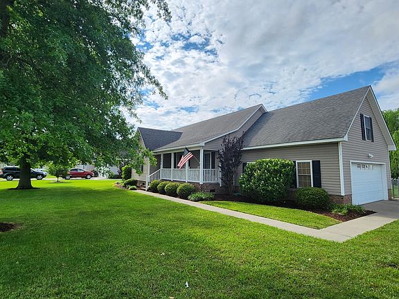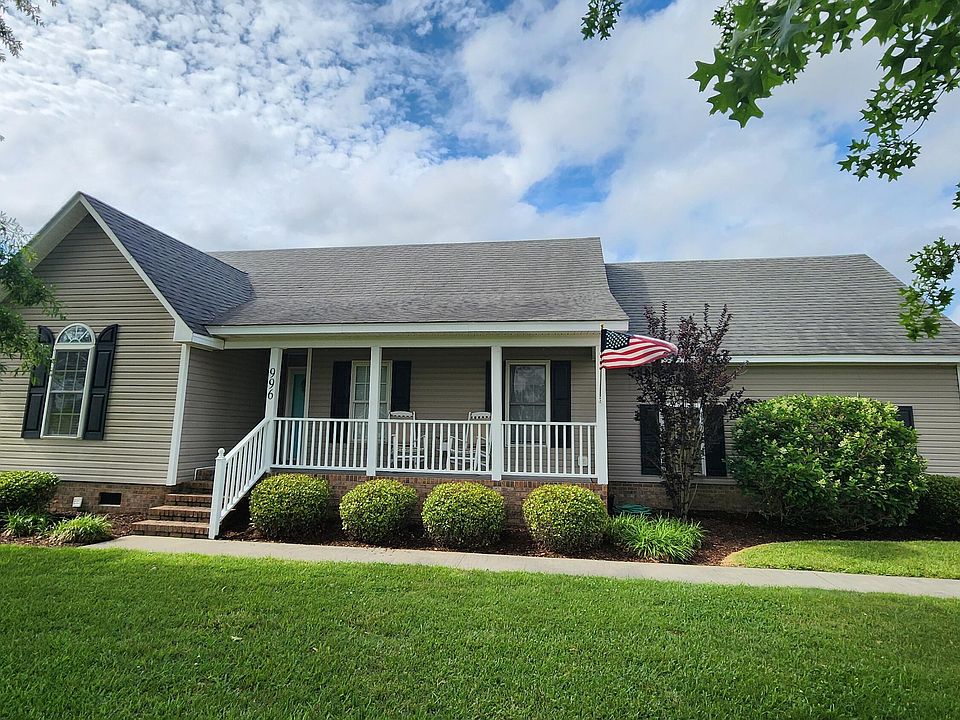 Soak in the peaceful country setting from your spacious front porch. Located less than 5 minutes from USCG base Elizabeth City and just down the road from Brothers Farm Market. This home will wow you with cathedral ceilings in the living area, guest bedroom and the primary suite bathroom. The updated kitchen features stainless appliances and stunning solid surface countertops. Beautiful hardwood floors run throughout the living area and into the primary bedroom. Primary suite includes a walk-in closet, large soaking tub, and walk-in tiled shower. 3 bedrooms plus a FROG. Don't miss the firepit in the fenced in backyard. There's also room to park a camper! No flood zone