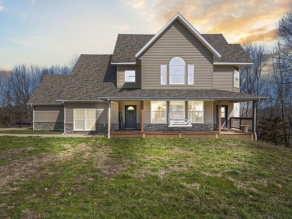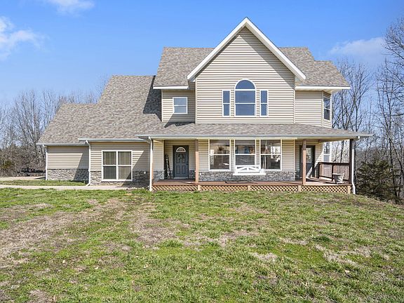 Welcome to this breathtaking countryside estate where space, opportunity, and rural charm collide. Nestled on a stunning 10.17-acre tract of functional land, this custom built home spans nearly 4,000 square feet that is bathed in natural light, where you are welcomed by soaring ceilings in the centralized open-concept living, dining, and kitchen areas. The kitchen features an abundance of custom cabinetry, sleek concrete countertops, and a gas range. The spacious main-level primary suite offers incredible views of the surrounding landscape and is complete with a well-appointed ensuite featuring a walk-in shower, jetted tub, and walk in closet. Convenience abounds with a dedicated home office, mudroom, laundry room, and guest bath all on the main floor. On the second level, two generously sized bedrooms and a full bath are complemented by an elegant balcony overlooking the great room, offering panoramic views of the property. The third-story bonus room and bath provide increased functionality--whether utilized as additional living quarters, a media room, game room, or home classroom. A fully equipped walk-out basement, currently operating as a successful Airbnb, adds incredible versatility. This space includes two bedrooms, a full bath, kitchen, and its own laundry--ideal for rental income, a guest suite, or multigenerational living. The acreage here makes this property a dream for hobby farmers and homesteaders alike. A spacious garden, chicken coop, and room for additional features in the outbuilding provide endless possibilities. The majority of the land is open and currently used for hay production--ideal for livestock--while the wooded areas provide stunning foliage and privacy. You'll also find an inviting outdoor fire pit area, a poured concrete back patio, a large front porch complete with a charming swing. Tucked away at the end of a private drive, this home offers the best of both worlds--peaceful seclusion yet just minutes from local amenities!