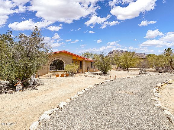 A rare desert retreat, enjoy peace, privacy, and serene desert views with this comfortable and quiet 3BR/2BA slump-block home! Updated kitchen with quartz countertops, updated cabinetry, laminate-wood flooring. Sunken living room with large picture window looks out to expansive front yard with circular drive. Large, low-care landscaped backyard features covered patio, spa, fruit trees, mountain views and the untouched desert beauty surrounding, as there are no neighbors to the north or west sides of the property. 2-car attached garage. Very convenient, sough-after Rancho Feliz neighborhood of close-in Oro Valley, mere minutes to shopping, restaurants, schools and offices. Newer roof approximately 6 years old. Don't wait on this one!