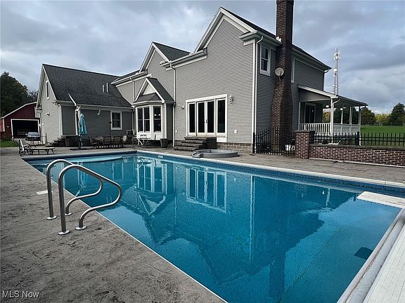 Chardon Twp....Spacious Colonial set back on 6+Private Acres! This sprawling family home offers great living space with 4 Bedrooms, 3 Full Baths & 2 Half Baths. Formal Living Room with crown molding & hardwood floors. Dining Room is presently used as home office with built-in desk & cabinetry. Family Room with wood burning fireplace, built-in bookcases & sliders to patio & pool. Eat-in Kitchen with cherry cabinets, center island, pantry, all appliances & breakfast area with ceramic floors. Large Laundry Room & Mudroom with built-in cubbies. Second staircase to the Master Bedroom Suite with vaulted ceiling, built-in wardrobe & Master Bath with jetted tub. Bedroom 2 includes private full bath. Bedrooms 3 & 4 with full bath to share. Full partially finished basement with bath. Gas furnace & Central air. Expansive concrete patio includes heated 40x20 in-ground pool with diving board and is surrounded by brick landscaped wall & built-in grill. Wrap around covered front porch overlooks pond. 3+car heated attached garage with large concrete apron plus 60x40 2-story outbuilding with (2) 14x12 ft overhead doors, ideal for the car enthusiast or collector. Selling AS-IS, This home and property is priced to sell and has so much to offer a new family, but needs improvements and cosmetic updates to make it your own! Great location on the northwest side of Chardon and just minutes to Concord, Mentor, UH Hospitals, Chardon Square & easy freeway access!