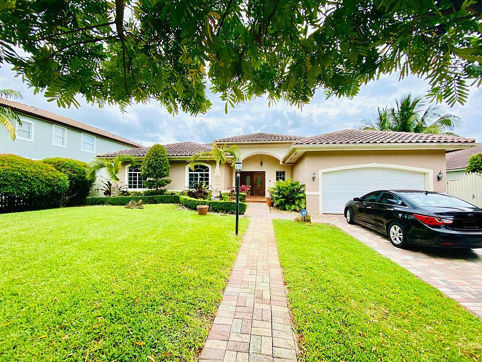 BEAUTIFUL HOME WITH POOL LOCATED IN VANDERBILT AT DORAL. THE ONLY NOT GATED COMMUNITY AT DORAL. THIS CUSTOM MADE FEATURE HIGH CEILINGS, 3 BEDROOMS, 3 BATHROOMS WITH A LUXURIOUS AND SPACIOUS KITCHEN WITH LARGE EAT-IN ISLAND, A FORMAL LIVING ROOM PLUS A FORMAL DINING ROOM WITH FRENCH DOORS. TITLE FLOOR THROUGHOUT THE ENTIRE HOUSE, LAUNDRY ROOM. GREAT LOT AND PAVED PATIO ACCESSED FROM THE MASTER BEDROOM SUITE TO THE POOL, LARGE DRIVEWAY FLOWS THROUGH THE GARAGE, GORGEOUS LANDSCAPING AND MORE !