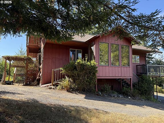 20 acres Where Serenity Meets Space—Your Private Retreat Awaits! Discover this exceptional Good Cents Home with 2-bedroom, 2-bathrooms and a room above main floor with a half bath. Attached two car garage—ideal for hobbyists, entrepreneurs, or anyone needing serious storage. Nestled on pristine Oregon landscape. Beautiful River, sunset, mountain and rainbow views from kitchen, living room, dining area and the deck. Tongue and groove ceilings in kitchen, dining area and living room. Home offers a certified wood fireplace. 5 miles from the vibrant heart of Brookings and Harbor. This property offers the perfect blend of privacy and convenience. Enjoy breathtaking views of the Chetco River and majestic Mt. Emily from your kitchen, front and side deck. Ample parking space at the house with circular driveway, shop area and other levels areas throughout the property. Property includes detached 1248 sq ft oversized shop with 12 ft doors with an apartment above. Whether you're seeking a peaceful escape, a place to grow, or a base for adventure, this property delivers. With room to roam, panoramic vistas, and easy access to city amenities, it's more than a home—it's a lifestyle. Other level areas and trails throughout the property. Paved driveway from the South Bank Road to the home. Lots of room to park RVs, boats, and other treasures. You don't know what you are missing so call for a private viewing of this one of kind property not too far from City and the Port of Brookings- Harbor.