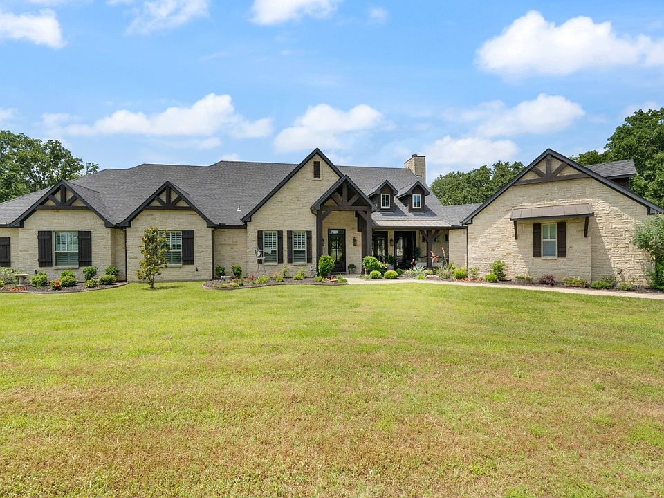 PEACEFUL COUNTRY LIVING....GORGEOUS Builders home featuring 4 bedrooms, 3 baths including a CUSTOM bunkroom on 38+ acres! An open kitchen offers a large island with storage, gas range, SS appliances, quartzite countertops, walk-in pantry and overlooks the huge living room with custom beams, large woodburning fireplace and TONS of natural light to enjoy incredible views! Master bedroom includes a shiplap feature wall, walk-in shower, clawfoot tub, dual vanities, and HUGE walk-in closet with built-ins. A barndoor leads to the laundry room w built in dog shower & mud bench. Luxury, hand scraped hardwoods throughout. Guest bedrooms w jack-jill bathroom with walk-in closets. Relax on the back patio with WBFP and outdoor kitchen; the front a cozy porch swing and a beautiful view of the land. Other features include a 35X50 insulated shop with attached 25' covered parking, wired with 220 and 50 Amp service for RV, and water. Property is partially wooded, fully fenced and cross fenced.