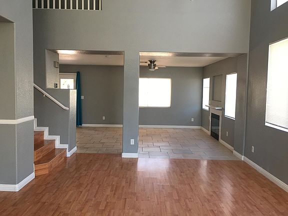 Beautiful 4-bedroom house for rent in the heart of Silverado Ranch. Built on an oversized corner lot with 4 bedrooms, 2 1/2 bath and a 2-car garage. Grand entrance with formal living featuring high cathedral ceilings, laminate wood floors, custom light fixtures and neutral colors. Separate family room with gas fireplace and ceiling fans. Lovely gourmet kitchen with nook,pantry, breakfast bar and S/S appliances. Half bath and laundry room with w/d downstairs. All 4 bedrooms are upstairs and feature laminate wood floors and ceiling fans. Guest bedrooms share a full bathroom. Spacious primary bedroom suite with walk-in closet, dual vanities and a tub/shower combo. Inviting backyard oasis with a covered patio and RV parking with gate on side.