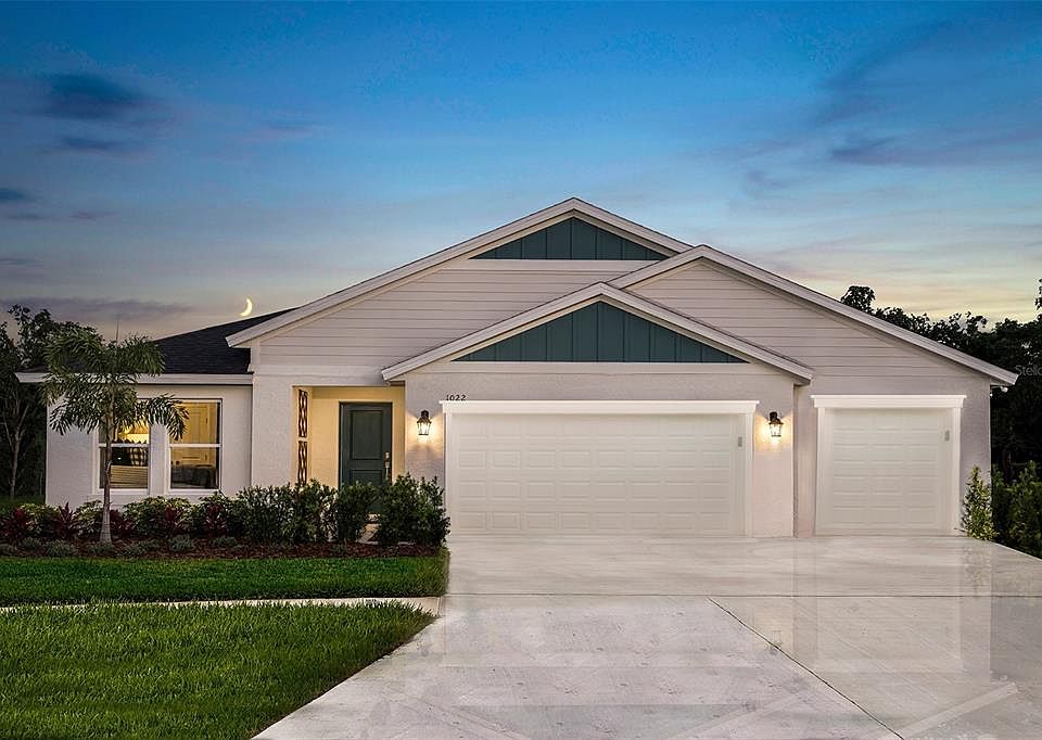 Under Construction. Discover the Jazmin, a stunning single-story home with 4 to 5 bedrooms, 3 bathrooms and 3-car tandem garage. Modern design meets family-friendly living in this impressive floor plan. Inside, the open concept living space flows effortlessly out to the covered lanai, and the den can easily serve as a 5th bedroom or home office. The kitchen is a true showstopper, featuring 42” upper cabinets, quartz countertops, stainless-steel appliances, and a large pantry for abundant storage. The owner's suite is a luxurious retreat complete with a walk-in shower featuring floor to ceiling tile, double vanity, and an oversized walk-in closet. With a smart thermostat with voice control, a spacious laundry room, and a flexible bonus room, the Jazmin brings both convenience and style to everyday living. The bold elevation and beautiful landscaping add captivating curb appeal. Meet Pasadena Landing, a fresh community of modern homes in a convenient location near KRATE, The Grove, and other local favorites—plus the added benefit of no CDD fees. With curated design packages and spacious layouts, Pasadena Landing brings comfort home. Whether you’re out exploring or enjoying time inside, this community fits your lifestyle with amenities designed for everything from fun to relaxation, including a pool, dog park, and tot lot. Images shown are for illustrative purposes only and may differ from actual home. Completion date subject to change.