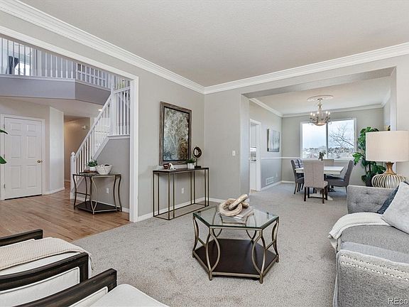 Best Lot & Views on the Block! Updated, Move-In Ready home backing to Open Space with awesome Mountain Views from all 3 levels. Over 4000 finished sqft, 6 beds (or 5 + main floor office), 4 baths, finished walk-out basement sitting on rare 0.16 acre lot in coveted Heather Hill neighborhood. NEW: Carpet, Interior/Exterior Paint, Refinished Hardwoods. Newer Roof, Windows, 3-stage HVAC, Tankless Water Heater, Light Fixtures. Flowing floor plan offers formal living & dining rooms with high ceilings & crown molding. Fully Updated gourmet kitchen boasts New quartz counters, stainless steel appliances all included (New double ovens & gas cooktop!), island & ample 42in white cabinets. Opens to spacious family room with gas fireplace & access to back yard. Main floor bedroom or office near updated 3/4 bath. Enjoy the stunning mountain & open space views from the expanded deck! Large, private yard with terraced garden area, large trees & lower covered patio. Retreat to the impressive Primary Suite complete with sizeable sitting room, tray ceiling w/fan & mtn views! Remodeled 5-pc bath has new tile, dual vanities w/new counters & fixtures, new shower enclosure, plus His & Hers walk-in closets w/built-ins. (Frameless shower glass to be installed prior to closing.) Bed #2 has walk-in closet, access to updated 4-pc hall bath; 2 more beds upstairs. Finished basement features multiple living spaces, wet bar, full size fridge plus bedroom & 3/4 bath. Spacious laundry room comes with W&D, utility sink, cabinets. Tons of storage areas & closets throughout. Oversized 3 car garage has lofted storage & cabinets, leads to mud room (can be converted back to laundry room). Gorgeous curb appeal, covered front porch! Walk to top-rated Heritage Elem & Valor HS. Views of Dad Clark park & access to miles of trails. Low HOA gets 4 rec centers, pools, tennis, fitness. Near Town Center, Central Park, new hospital. Easy to C470, LightRail. This one has it all! Must See!