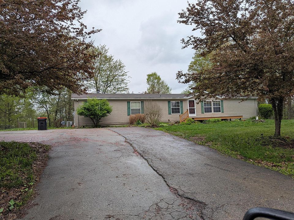 2052 sq ft Modular on 3+ Acres. Sitting on a full basement. Home features 4 bedrooms, 2 full bathrooms, living room, family room w/fireplace, office with built-in desk. Pole Barn.Propane Tank is leased.