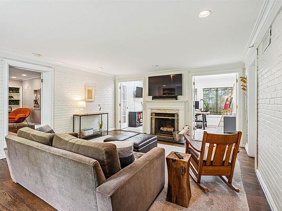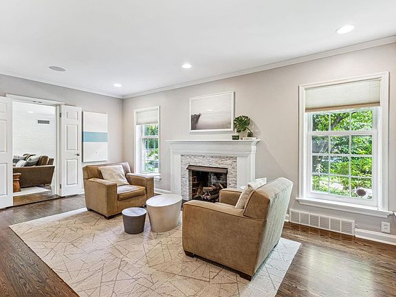 Classic whitewashed brick ranch located in the heart of Ladue, steps from the elementary, middle and high school. Main floor features beautiful hardwood flooring, abundant natural light and updated kitchen with mudroom. Kitchen opens seamlessly to the dining area flanked by the living room with built-in shelves & new gas fireplace. Adjacent large family room with bookcases & generous wood burning fireplace opens to the sunroom through glass French doors. The main floor primary bedroom suite features a luxurious bath with heated tile flooring, freestanding tub, double sinks, separate shower and walk-in closet, large second bedroom with ensuite bath, third bedroom perfect for a nursery or office, powder room & additional laundry closet. Finished lower level features second family/rec. room, full egress fourth bedroom, large full bath, a bonus room, laundry room & plenty of closets & storage. The backyard offers privacy with a deck and beautifully landscaped green space. Additional Rooms: Mud Room, Sun Room COOL: 14 SEER+