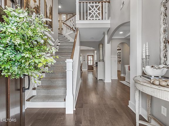 Tucked into a quiet West Knoxville cul-de-sac, this 4-bedroom, 2.5-bath custom-crafted home blends Southern warmth with tailored elegance — a true gem on one of the prettiest lots in the neighborhood. From the moment you arrive, curated landscaping, carriage-style garage doors, and a welcoming front porch set a graceful tone for what's to come.