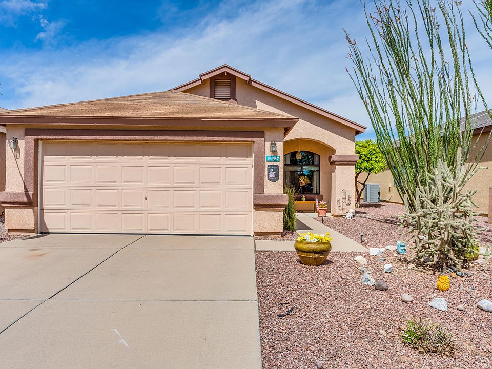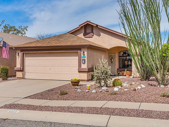 Beautiful, well cared for 3 bed/2 bath home in Rita Ranch. This lovely home features a split bedroom plan, high ceilings, kitchen with stainless steel appliances, skylights, ceiling fans in every room. No carpet and No POLY pipes. Enjoy the professionally landscaped yard with a covered patio, two mature citrus trees and Tuff shed. Close to Davis Monthan air force base, Raytheon, purple heart park and much more. Located in the award winning Vail school district. Call today-This gem will not last! Listing agent is related to the seller.