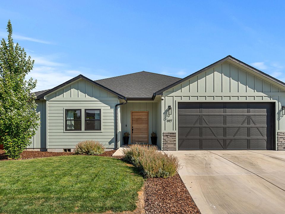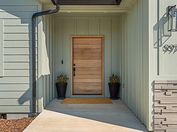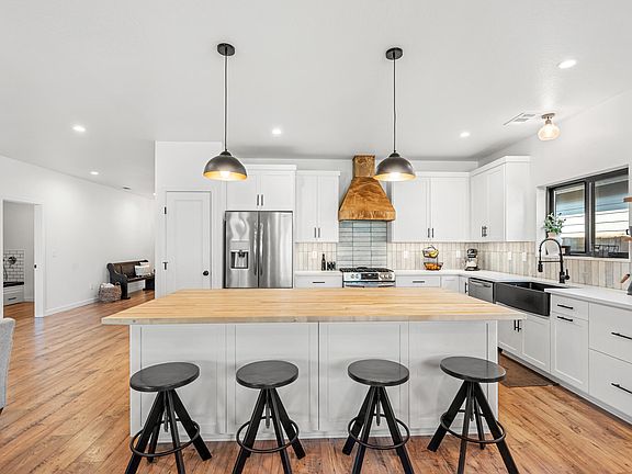 Welcome to this stunning 3-bedroom, 2.5-bathroom home offering 2,022 sq ft of modern living, built in 2021. A dramatic entryway with tall ceilings sets the tone for the bright, airy open floor plan, featuring a custom wood range hood and spacious butcher block island ideal for entertaining. You will love the inviting primary suite, which has a full tile shower and large soaking tub. Thoughtful touches include a custom doggie wash station in the laundry room, and modern black fixtures and windows throughout. Outside, enjoy a covered patio, generous backyard with shed, and close proximity to Eagle Point Golf Course. This home combines comfort, function, and character in one beautiful package- don't miss it!