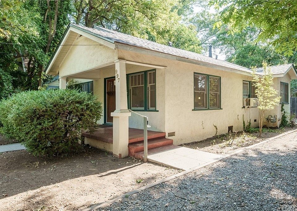 Here is your chance to own a charm and character home on a large lot! This very affordable vintage home was built in the 1930's and includes the classic hardwood floors, original glass doorknobs, archways, and traditional tile countertops. The floor-plan has a great flow with two spacious bedrooms, a living room open to the large dining room and an oversized laundry area off the sunny kitchen in back. Features include a large front porch, roomy driveway area to park off street, an extra spacious backyard and a small cemented basement with a sump pump. NEW ROOF was just completed! TWO BLOCKS from Bidwell Park and One Mile! Home could use some updating, but overall it's in good condition. Sellers prefer to sell in its "as is" condition, but there is so much potential! Reports are on file. Call for an appointment today!