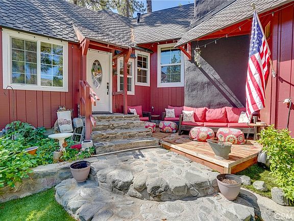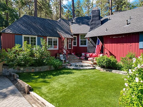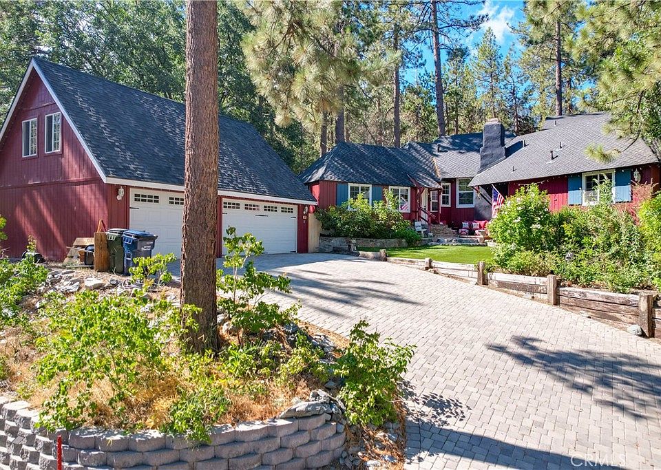 ****WEST SIDE BIRD STREET LOCATION!!**** SINGLE STORY ACCESS, MAIN LEVEL PRIMARY BEDROOM, QUARTER ACRE FENCED LOT, OPEN FLOOR PLAN AND IMPRESSIVE 3 CAR GARAGE. FLEX SPACE OUT BACK AND ADDITIONAL LIVING SPACE OF 894 SQUARE FEET ABOVE THE GARAGE!! This well loved home has it all... Inside, stone look easy maintenance tile flooring with knotty pine ceilings and open beam effects, awesome native rock fireplace and mantle. Open kitchen to dining to living room floor plan. Stainless appliances (newer refrigerator) in the dual kitchen help accent maple cupboards, and access to the rear yard and second sink to rinse veggies and be the Master Chef!! Den off the living room is outfitted with true log cabin siding inside and out and offers another opportunity to relax or use as a home office. The log stairs in the den takes you up to the third bedroom with its own 1/2 bath and beautifully pitched ceilings, more knotty pine and open beams. Back downstairs, the split floor plan offers the second bedroom on one side and the Primary on the other. Primary sports original hardwood floors, vaulted ceilings and french doors to the private side yard, which also can be completely shut off on the inside for ultimate privacy or bnb options! Outside, you're warmly greeted by a paver driveway, new artificial grass in the front and back, rebuilt stone stair front porch and landing, beautiful landscaping on a drip and sprinkler system, new fencing, cozy veranda area and platform dining area for multiple al fresco options! There's also a 190 square foot flex space option in the back with new carpet, paint and could be used for a crafts room, home office, workshop. Oh yeah....the 3 car garage!! Dedicated electrical panel, room for the toys, and an impressive 894 square foot loft that could be converted to additional living space easily. Other upgrades include vinyl dual pane windows, dual furnaces with warranty, water softener, septic tank risers for easy access, ice melting hot water in the front yard, freshly stained decks, NEWER PLUMBING PIPES AND ELECTRICAL EVERYWHERE, decorative shutters, 50 year roof and so much more!! Don't miss this opportunity to own one of Wrightwood's most sought after homes!!