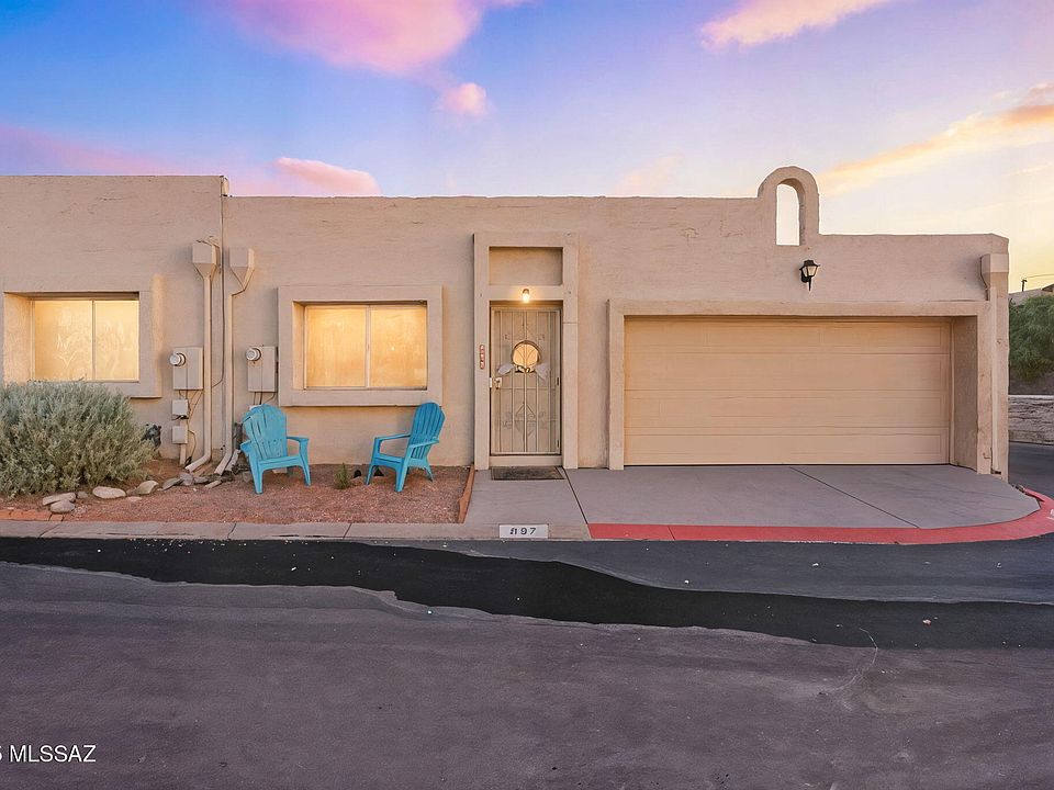Welcome to a seamlessly updated, single-level gem in Pueblo Villas West This 2 bedroom, 2 bath condominium offers approximately 1,232 sq ft of refined living space, a perfect blend of comfort and low maintenance elegance. Step inside and you'll immediately notice the attention to detail: newer tile flooring throughout (no carpeting), an abundance of natural light thanks to skylights and high ceilings, and a fresh, modern palette that invites you in. The thoughtfully updated kitchen features gleaming quartz countertops, stainless-steel and black appliances, ample cabinet space, and an open layout that flows effortlessly into the living and dining areas. Both bedrooms are generously sized and the home boasts two full bathrooms, making it ideal for guests or shared living.