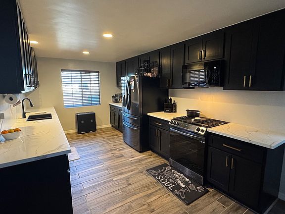 REMODELED, upgraded, and gorgeous single story 3 bed/2bath home with space for your trailer or RV!! Check out this absolute entertainer's dream!! Remodeled kitchen with quartz counter tops, and large center island - perfect for dining or entertaining. Open concept with a huge family room and bonus room area. You will love the huge primary bedroom with enormous walk in closet!! There is a secondary bedroom that also has a huge walk-in closet and a built-in desk area. Interior has been recently painted throughout. Exterior front yard has artificial turf, and beautiful hardscape. The rear yard offers a covered patio, outdoor kitchen/BBQ island and gas fire ring. Solar panels will save $$ - compensation to owner on electricity to be arranged. 2 car garage has epoxy flooring. This home is super clean and is sure to impress! ADT alarm in place with cameras and doorbell. These items are available if tenant wishes to continue a plan with ADT.