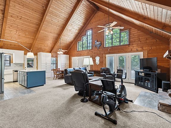 Escape to your own private retreat in this beautiful log cabin nestled on over an acre surrounded by mature trees. This warm and inviting home perfectly blends rustic charm with modern comfort, offering a peaceful setting just minutes from the conveniences of town. Step inside to an open floor plan featuring soaring wood-beamed ceilings, a spacious living area, and a cozy stone fireplace—perfect for relaxing or entertaining. The kitchen offers a large island, ample cabinet space, and a seamless flow into the dining and living areas. The home includes two bedrooms on the main floor, while the upstairs loft leads to the primary suite, complete with its own private bathroom for a serene retreat. Enjoy outdoor living on the front porch, side deck, or the covered sunroom (not included in the square footage), ideal for sipping your morning coffee or unwinding at the end of the day. The property’s abundance of trees provides both shade and privacy, creating a peaceful, park-like atmosphere. This log cabin offers the perfect combination of nature, comfort, and charm.