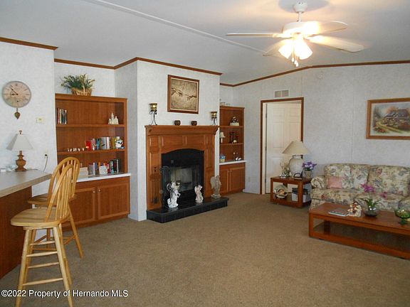 Looking for a beautiful well maintained FULLY FURNISHED large home? Placed on a high and dry lot with a no build behind, Stop I have one listed! This is 3-bedroom 2 bath split plan, open floor plan cathedral ceilings, LIGHT AND bright throughout With a Built-in fireplace Gorgeous large kitchen plenty of cabinet space, golf cart garage, all bedrooms are nice size, this home also features living room dining room inside laundry WITH An OFFICE, Nice Florida room, LARGE SHED AND GOLF CART GARAGE and many upgrades, Come and enjoy the Florida living in a 55 plus Golf community where you own your own land for 48.00 a month .....HOME HAS A BRAND NEW ROOF !!!