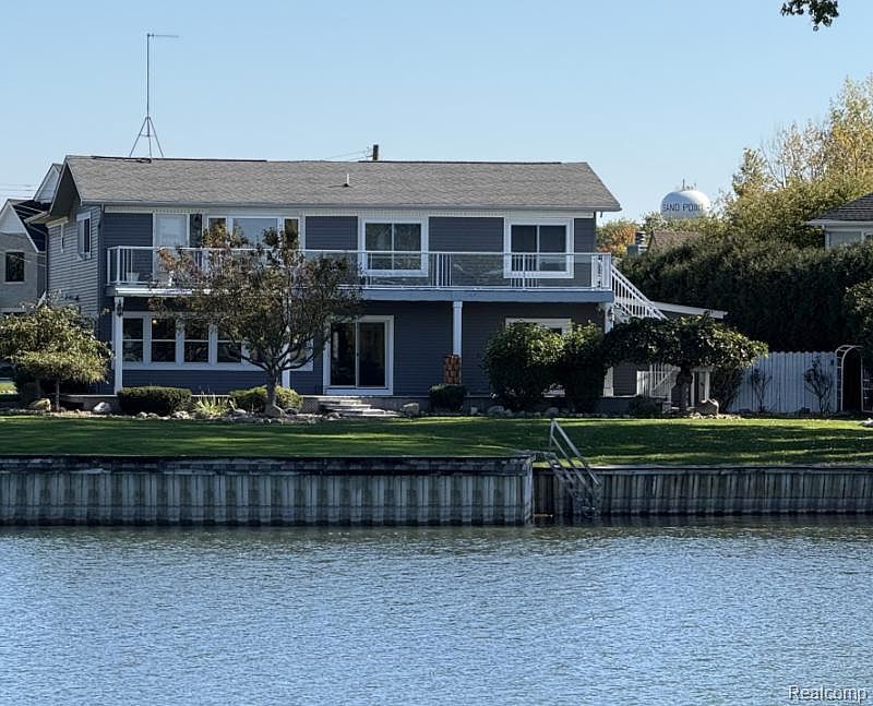Discover coastal elegance in this exceptional Sand Point canal home, offering the perfect blend of tranquility, craftsmanship, and stunning panoramic views. Ideally positioned at the end of a quiet cul-de-sac, this residence captures picturesque sunsets and sweeping vistas of Saginaw Bay, Charity Island, and North Island, truly the next best thing to direct lakefront living. Step inside to find a thoughtfully designed floor plan featuring 5 spacious bedrooms and 4.5 baths. The main level showcases a beautiful custom kitchen, open-concept living and dining areas, in-floor heating, and one bedroom with a full bath, this is perfect for guests or convenient single-level living, also next to the laundry room is a 1/2 bath. The second floor offers four additional bedrooms and three baths, including spaces designed to maximize the stunning water views. Enjoy seamless indoor-outdoor living with a two-tiered deck system and upper balcony, a sun porch, and manicured grounds that lead to a steel sea wall and canal frontage. The underground sprinkler system, using lake water from the property’s own well, keeps the landscape lush and vibrant. Additional highlights include a two-car attached garage, first-floor laundry, and a whole-house generator ensuring comfort and reliability year-round, and a nice addition is the extra 20x10 shed, with space for plenty of outdoor equipment and toys and also features a door to open for a crawl space for even more storage! Buyer to assume the remaining canal dredging and water assessments. Point of Sand Point Homeowners Association fee: $750 annually. This remarkable home is more than a destination, it’s a lifestyle. Enjoy the serenity, beauty, and prestige of waterfront living at its finest. Call today to view the home - you will not be disappointed.