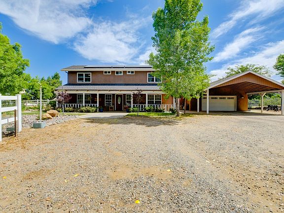 23 ACRE, 5 BR 4 BA RANCH STYLE home on a well! Beautiful horse property featuring an arena, 2 round pens, 4 stall mare motel/tack room, Hay/RV barn, workshop and chicken coupe . Amazing open family style kitchen with views! Apricot, Apple, plum and grape vines flourish the yard! Tailored with tall open beamed ceilings, and beautiful floors. The home has 43 solar panels paid and owned. Country living at its finest. Come escape the city noise and enjoy the sound and views of nature. This 5 bedroom 4 bath ranch style house is on a well and has an attached granny flat that could possibly be used for supplemental income. The home has recently had 43 solar panels put in that is been paid in full and owned by the owner. The home sits on 10 acres but is being sold with an additional 10 acre parcel so 20+ Acres in total. The grounds offer multiple horse facilities, arenas, chicken coupe, shop, outbuilding, pool, seasonal pond, garden and mature trees all over. Do not miss out on the opportunity to escape the city to live in the country.