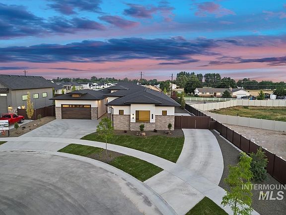 Beautiful modern craftsman custom design by Sustainable Homes, located in Star's newest luxury home community, Torchlight Estates. Home features an open floor plan with gorgeous kitchen, Thermador cook top, beam accents & stunning stone fireplace. High end finishes and design accents throughout make this a truly unique and beautiful home! Three bedrooms plus a den/office. Enjoy outdoor living with the covered patio, huge back yard, and front entry courtyard for extra space & privacy. Large 4 car garage perfect for a hobby or shop space, plus fenced RV parking pad with separate driveway! Energy efficient upgrades include heat pump HVAC with gas forced air backup, whole house ventilation system with conditioned crawl space, tankless hot water heater and hybrid insulation. Full landscaping and vinyl fencing. Don't miss this one!
