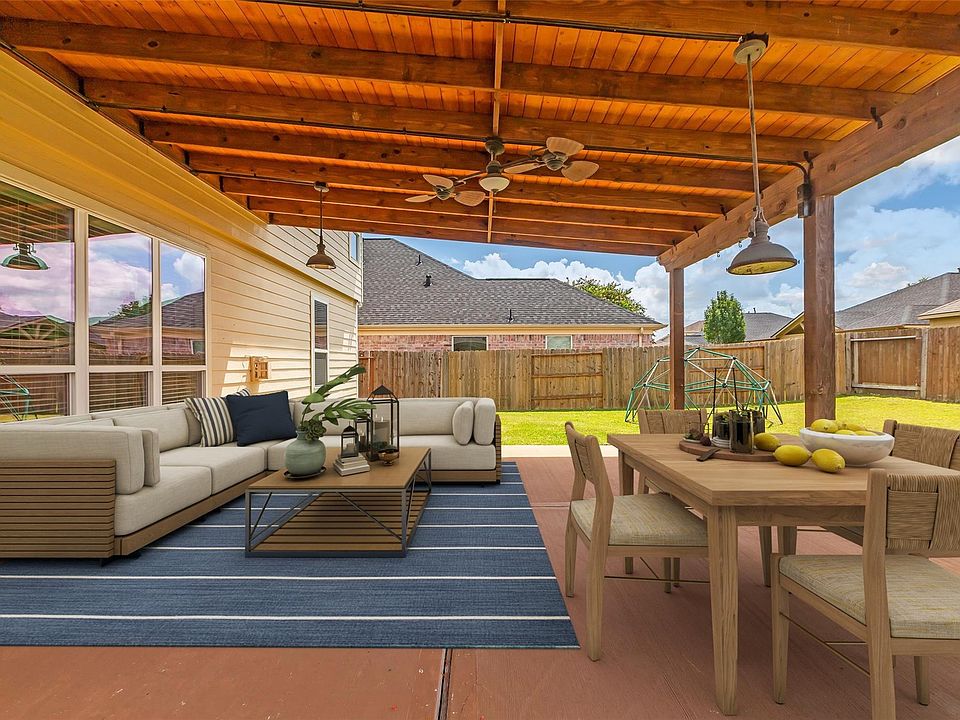 This move-in ready home offers an abundance of space with 5 generously sized bedrooms and 3 full bathrooms—perfect for growing families or those who love to entertain. The heart of the home is the open-concept kitchen, featuring rich wood cabinetry, granite countertops, gas cooking, and a breakfast bar, all overlooking the inviting family room with wood flooring and a cozy gas log fireplace. The home has both a formal dining room for special occasions and a casual dining area perfect for everyday meals. A downstairs bedroom with full bathroom is ideal for a home office or guest room. Upstairs, you'll find the expansive primary suite, three huge secondary bedrooms, and a conveniently located laundry room. Step outside to enjoy the oversized covered patio and large backyard—a perfect setting for kids, pets, and outdoor gatherings. Refrigerator, washer, and dryer are included. Located just minutes from The Woodlands’ premier shopping, dining, and entertainment, with quick access to I-45.