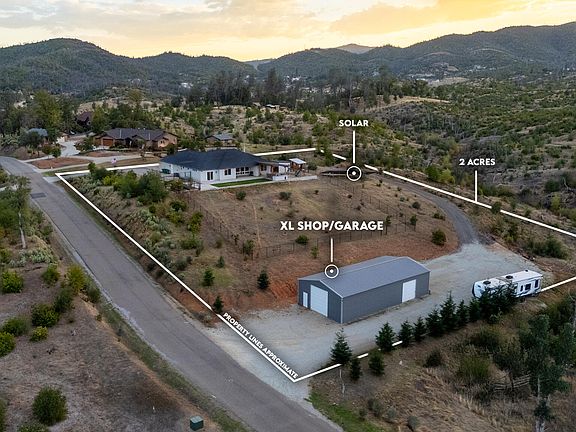 Nestled in the highly desirable West Redding area off Lower Springs Road, this stunning custom built home, constructed in 2021, offers 2,553 square feet of modern luxury on a sprawling 2 acre lot with fantastic views, owned solar panels and a 30 x 60 SHOP. With 4 bedrooms, an office, and 2.5 bathrooms, the open concept floor plan seamlessly flows and creates functionality throughout, featuring a split bedroom layout for added privacy. The gourmet kitchen with quartz countertops, large island and stainless appliances opens into the spacious living and dining areas full of natural light, perfect for entertaining. Step outside to the covered patio, complete with a built in BBQ, and soak in breathtaking views of the surrounding landscape, with hundreds of acres of untouched land as your backdrop. The property also boasts a massive 30 x 60 (1,800 sq ft) shop, ideal for hobbies or storage, and owned solar with 32 panels for energy efficiency. Just minutes from shopping, dining, and the recreational haven of Whiskeytown Lake, this home combines serene country living with urban convenience.