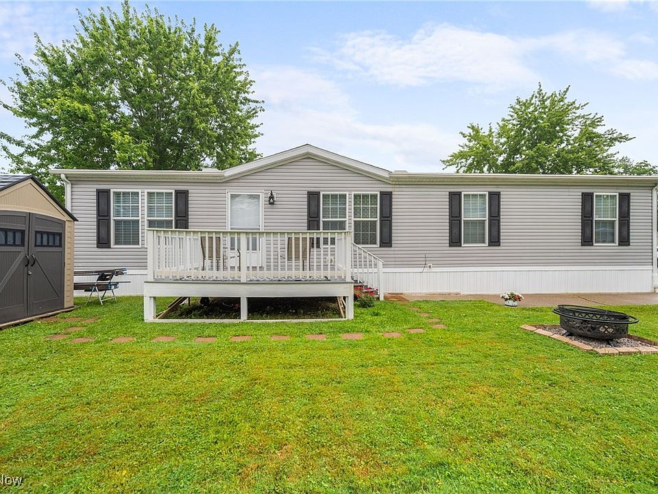 Welcome Home ~ This 2019, 1568 square feet Champion Sonic home is open and spacious throughout. This home features an open floor plan with a large living room and opens to the fabulous kitchen which has an abundance of cabinets, counterspace and center island. The kitchen has a Samsung refrigerator, gas stove, dishwasher, range hood and double sinks. It offers space for gathering and entertaining. The primary suite is spacious and has a large walk-in closet, separate bath with double sinks and linen closet. There are two additional bedrooms and full bath on the opposite side of the home along with a wonderful family room. The laundry room is off the kitchen; it has a Samsung washer & dryer that will remain with the home. There is a door in the laundry that leads to the side of the home. This home has a large deck, two parking spaces in the driveway and a wonderful newer shed. This home is in close proximity to highways, schools, shopping and restaurants.