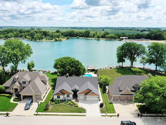 Lakefront Luxury Living on Westshore Blvd | Manteno's Premier Address! Experience one of Manteno's most coveted lakefront properties-an extraordinary custom built ranch offering nearly 4,000 sq ft of refined living space, perfectly positioned on the big lake along prestigious Westshore Blvd. This home is more than just a residence it's a lifestyle retreat. Step into your private oasis featuring a saltwater in-ground pool surrounded by stamped concrete patio, a lakeside cabana, and a built-in firepit-ideal for entertaining or simply relaxing by the water. Enjoy paddle boarding, boating, or fishing right from your backyard. The heart of the home is the massive chef's kitchen, boasting granite countertops, endless cabinetry, stainless steel appliances including a double oven, walk-in pantry, and two islands-one with wraparound seating for 6+ and a second with cooktop. The kitchen opens to a dining space wrapped in windows with lake views in every direction. Soaring cedar lined cathedral ceilings highlight the great room with a dramatic floor-to-ceiling stone fireplace. A wall of glass lines the 40-ft all-seasons room, offering panoramic lake views year-round. The luxurious primary suite is a serene escape, complete with cathedral cedar ceilings, sitting area, private access to the all-seasons room, a large walk-in closet, whirlpool tub, dual sinks, and separate shower. One of the four bedrooms doubles as a home office. Major updates include new roof, siding, and HVAC (full list available). A 2.5-car attached garage completes the package. Broker-owned. Welcome to your own slice of paradise-where every day feels like vacation.