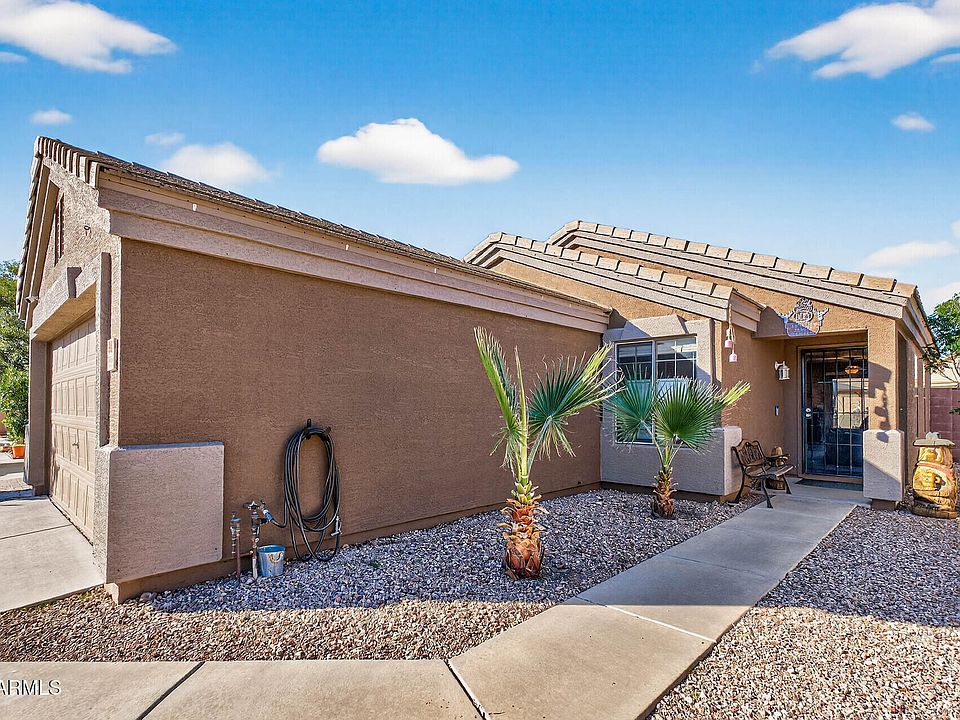 This beautifully upkept home is ready for its new loving owners! The current owner has done many upgrades and updates to the home. With new exterior paint(2025) and new Interior paint (2024), Extended Driveway, new flooring throughout(2023), new light fixtures, Added new trees(lime, ficus, orange already producing, Walking in you are welcomed to the open main living area, off there you have the kitchen and dining nook. The hallway leads to the 3 bedrooms and 2 bathrooms, all tvs in the home convey as well! The backyard is ready for you to make it your own, the canopy and table and chairs and tv underneath will stay with the home for the new owners, as well as the shed in the back corner of the lot. Home is also close access to all shopping/dining Buckeye has to offer as well as the new Verrado marketplace opening 2026! Don't miss out on the opportunity to own this stunning home that combines functionality with style, and offers endless possibilities for indoor and outdoor living.