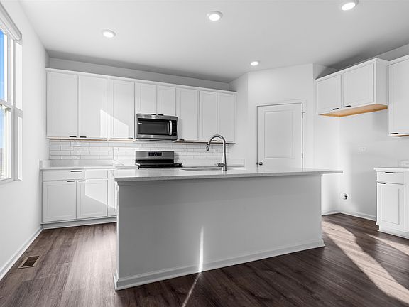 Better than new construction! This stunning Holcombe model offers 2,356 square feet of living space with 4 bedrooms, 2.5 bathrooms, and an oversized 3-car garage. The open floor plan features a bright and airy living room, spacious dining area, and a gorgeous kitchen with 42" white cabinets, white quartz countertops, a large island, and a walk-in pantry. Durable vinyl plank flooring runs throughout the main living areas. The main level also includes a versatile office or playroom and a convenient half bath. Upstairs, you'll find four generous bedrooms, including a beautiful primary suite with a walk-in closet and private en-suite bathroom, plus a second-floor laundry room. The basement provides plenty of storage space, two egress windows, and a Rinnai tankless water heater. Fantastic location near parks and walking trails, with easy access to shopping, dining, and major highways for a convenient lifestyle.