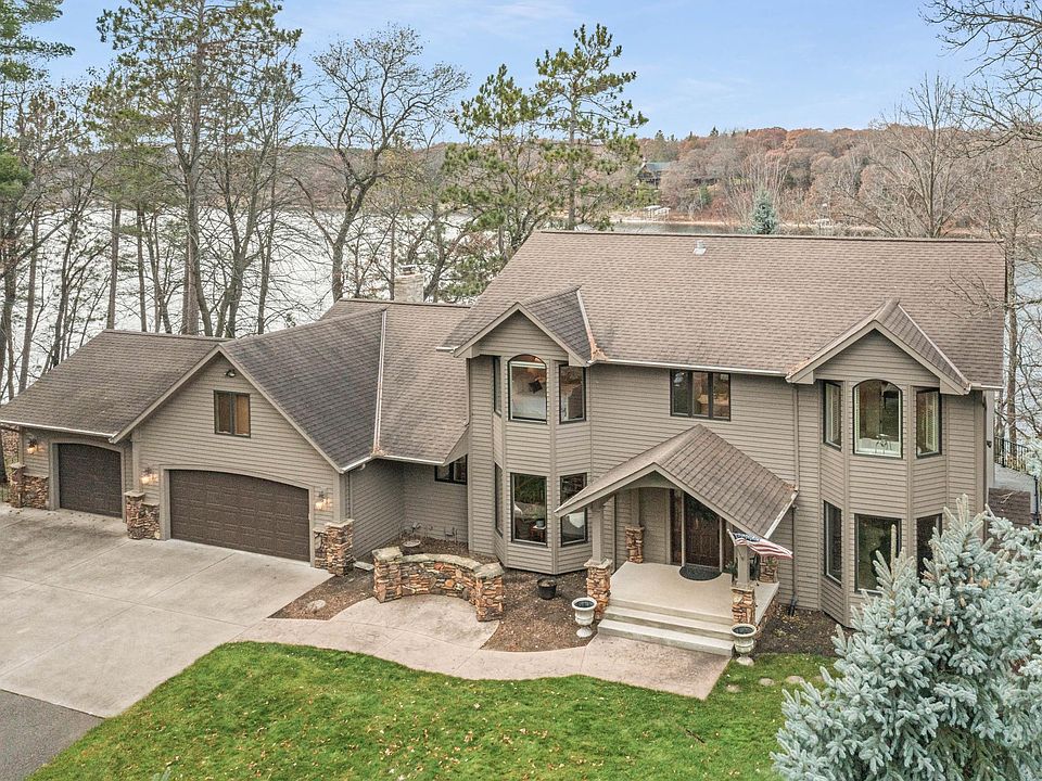 Gilbert Lake-Don’t miss your chance to experience this tranquil unsurpassed luxury lake hm & enjoy all that lake living has to offer w/the convenience of being located close to downtown Brainerd & Baxter in this 2 story, full w/o, 3 BR, 3 BA hm boasting sunset views, 304F & 4.29ac. Main flr lakeside liv rm w/hrdwd Ash flrs, FP, lakeside deck & gourmet kit w/granite cntrtps, center island, SS appliances, pantry & office space. Dining rm w/bay window & hrdwd flrs, Family rm w/FP, foyer & hm office/library, mud rm, 3 stall gar, lndry rm & guest BA. 2nd flr lakeside primary BR suite, w/c & BA w/French doors, heated flr, soaking tub, shower & 2 vanities. 2 guest BR w/w/c & full BA w/dbl vanity. Full w/o LL offers ready to finish living spaces, storage, utility rm & stubbed for 4th BA. Parklike setting w/stamped paved walkway & caffe patio, covered porch, garden, mature trees, lndscpd grnds, in-grnd sprnk & paved drive. Additional 257F & 1.27ac available upon the successful sale of home.