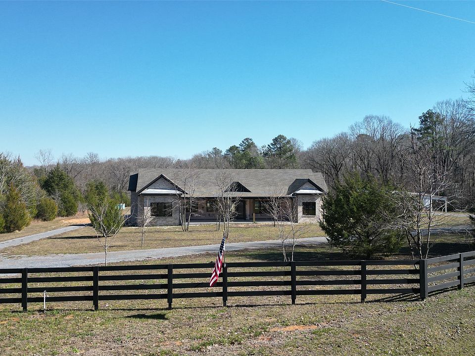Imagine waking up to quiet mornings, wide open skies, and the gentle site of deer moving through the trees. This peaceful 10-acre retreat in Mathew’s, Alabama offers the space, and privacy to create a home where memories are made and traditions begin. This remarkable property features a partially completed main home and a fully finished guest home in 2024, all surrounded by nature teeming with wildlife.The main residence offers over 3,800 square feet and is approximately 60% complete, providing a rare opportunity to select final finishes and put your personal signature on your dream home. The thoughtfully designed floor plan includes four bedrooms, four full baths, and 12 foot ceilings throughout. The open concept kitchen flows seamlessly into the living area, where expansive windows overlook the massive covered patio, creating the perfect space for family gatherings and everyday living. The primary suite serves as a private retreat featuring a spacious primary bath that connects the bedroom and laundry room for added convenience. Additional bedrooms and bathrooms offer plenty of space for family and guests. The oversized two-car garage boasts 14-foot ceilings and extra width, allowing both car doors to open fully with ease and offering room for storage. Connected to the garage is a large workshop with its own private bay door, for projects, hobbies, or additional storage. The 1500 square foot guest home, completed in 2024, features an open floor plan with one bedroom, a spacious walk-in closet, and a beautiful bathroom with a walk-in shower and double vanities-perfect for extended family or visitors. Enjoy peaceful evenings on the deck watching wildlife roam, unwind in the private outdoor shower and take advantage of the pole barn with electricity and water, gated front entrance, and utilities available in multiple locations throughout the property. More than a home, this is a place where families grow, memories are made and traditions can grow for generations.