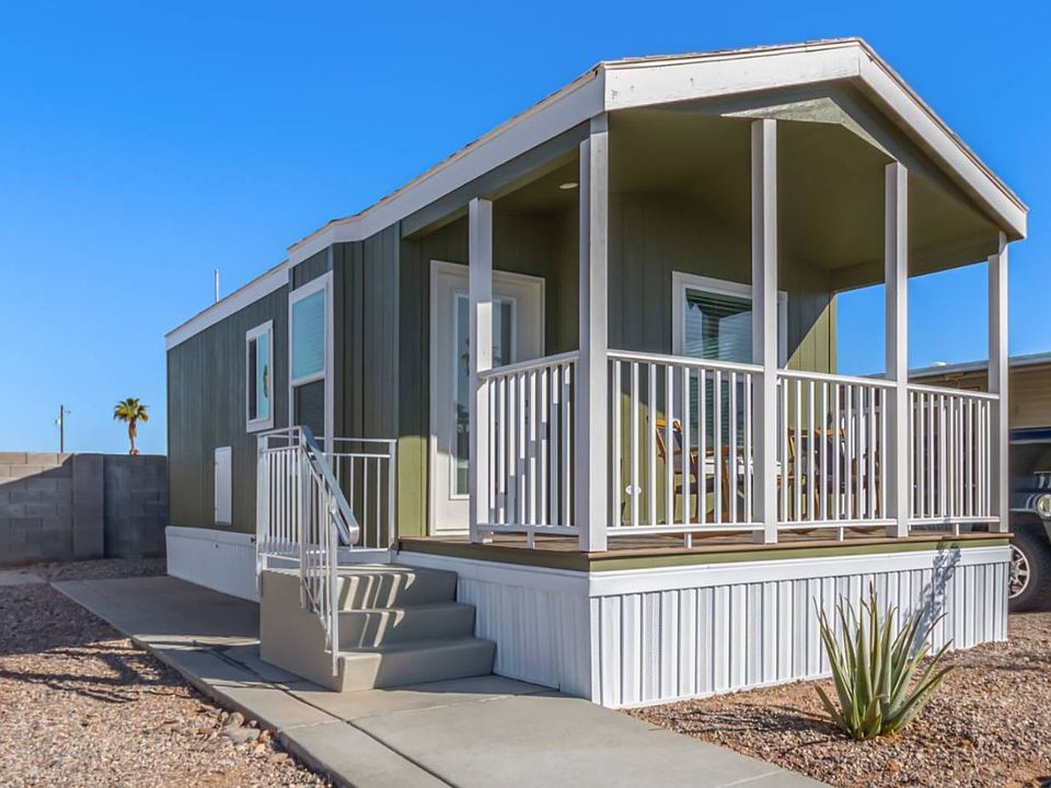 SUMMER SALE ALERT! Lot Rent WAIVED for ALL of 2025 when you buy now! Don't miss out on this limited-time offer. BRAND NEW 2025 CHAMPION 1 BEDROOM, 1 BATH PARK MODEL! Leisure Valley RV Resort, a small, quiet 55+ community just minutes to the best of Casa Grande. BRAND NEW 1 bed 1 bath Champion Park Model with expansive porch. This fully loaded home features an open concept layout that features upgraded cabinets, solid surface countertops, tiled backsplash, stainless steel appliances, farmhouse sink with gooseneck faucet and garbage disposal. The serene master bedroom features built-in cabinetry with plenty of closet space, while the spacious bathroom features a large step-in shower. Outside, you'll find a shed perfect for storage. There is also an option to add a carport to this home! Enjoy resort-style amenities including a heated swimming pool and whirlpool spa, clubhouse complete with billiards and ping pong tables, library, on-site laundry room, bocce ball, dog park, on-site storage (bring your boat or RV) and so much more. Whether you are looking for a seasonal vacation home or tranquil place to live year-round, this an affordable way to live in paradise! Call us now for details! *Land is leased not owned*