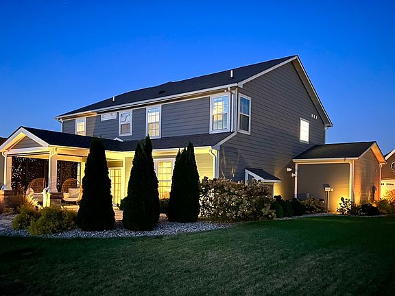 Step into modern elegance at 9986 Gallop Lane, where details from the soaring 2-story foyer to the $50,000 outdoor living space have been designed to impress. This 4-bedroom, 2.5-bath home in the wonderful Steeplechase neighborhood of Fishers and HSE Schools offers nearly 3,000 sq ft of luxury and comfort. The foyer and wrought iron staircase set the tone, leading to an open-concept layout ideal for everyday living. The chef's kitchen boasts granite counters, a center island, double ovens with a microwave, a vented hood, stainless steel appliances, under-cabinet lighting, and a spacious double pantry. The family room, which opens from the kitchen and dining, features a cozy gas fireplace. At the same time, the Alexa-controlled home offers smart vents, outdoor lighting, garage, front door, and interior lighting, bring effortless convenience. Upstairs, the versatile loft offers flexible living space, and each bedroom includes custom closets. The spa-like primary suite boasts quartz double vanities, a frameless tile shower, whirlpool tub, and a custom lit walk-in. The laundry room adds convenience with a sink and cabinetry. Step outside to a true outdoor retreat-featuring a 16x16 covered paver patio, extended terrace, professional landscaping, and unobstructed views. The Bluetooth-enabled Philips Hue landscape lighting system and top-of-the-line Rainbird ESP-3 irrigation system elevate both function and beauty. The garage is finished to perfection with wall-to-wall slatwall storage and an epoxy-coated floor. Additional upgrades include a tankless water heater, water softener, humidifier, Guardian security with motion sensors and glass break detection, exterior cameras, full irrigation, concrete edging, and rain refresh paint. Within walking distance to the neighborhood pool and playground, this home truly has it all-style, technology, and lifestyle.