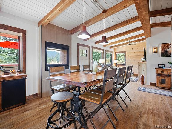 This rental is a RARE opportunity. Escape to mountain serenity with this beautifully renovated and fully furnished cabin nestled in the pines of Sedalia. Located in the gated community of Rainbow Falls North, this stunning retreat blends rustic charm with upscale modern finishes. Every inch of the home has been thoughtfully updated, offering a turn-key living experience with high-end furnishings, designer touches, and peaceful surroundings. Step inside to find a cozy yet refined interior featuring vaulted ceilings, exposed beams, and a two-sided fireplace that creates the perfect ambiance for year-round living or a seasonal getaway. The gourmet kitchen is equipped with premium appliances, sleek cabinetry, and stylish countertops ideal for cooking and entertaining. Step outside to the expansive deck, where you can relax, dine, or take in the stunning mountain views and natural landscape. This property also includes a separate shed and additional storage space. The home backs to National Forest, providing direct access to miles of hiking trails, and is perfect for outdoor enthusiasts. Residents of Rainbow Falls North enjoy access to a private community fishing lake, stocked with rainbow and brown trout a true Colorado mountain lifestyle. Conveniently located just a short drive from Rampart Range, Woodland Park, Castle Rock, Sedalia, and the foothills, this home offers the perfect blend of seclusion and accessibility. This is a gated community, and you will need access via the gate and home.