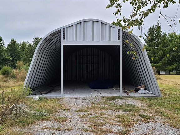 This place is remarkable! The land is level and ready for your dream home OR take this unique Quonset Hut and renovate to your liking. Driveway, electrical, water and sewer lagoon are already in place. You can build a house and use the Hut for storage or make the most unique home in southern Illinois with this structure. The possibilities are endless. Need ideas, just google Quonset Hut. You will be amazed at the possibilities. The hut was shipped here from Canada and put together on site. It has a concrete floor.